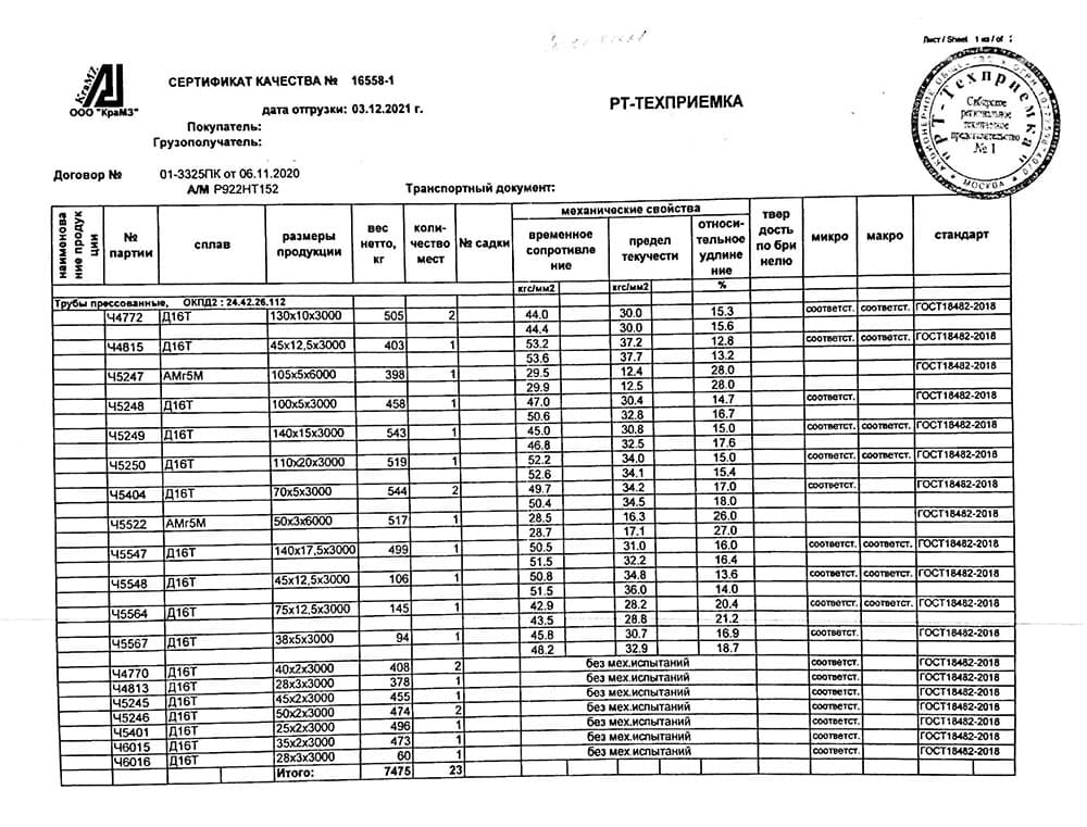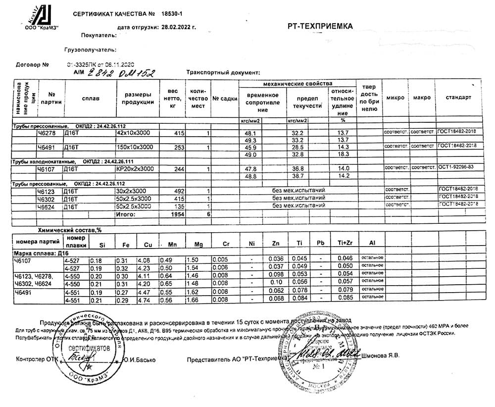 Трубы из дюралюминия Д16 и Д16Т – изготавливают методами холодного прессования и горячей выкатки. Наружные диаметры для труб с круглым сечением составляют от 6 до 160 мм, толщина стенок варьирует от 1 до 50 мм.